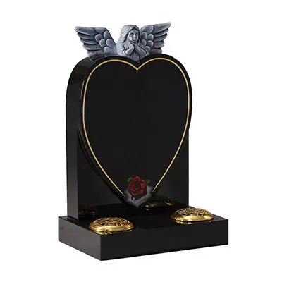 This black granite children’s headstone incorporates a carved angel and a painted rose ornament to provide a beautifully crafted memorial.