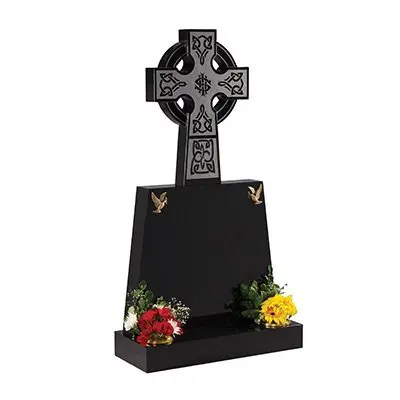 The black granite headstone with Celtic wheel cross. This traditional design provides a special tribute to your loved one.
