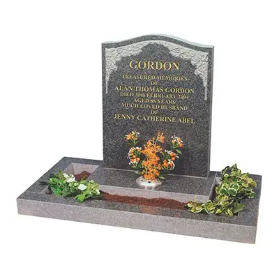 This Glenaby Grey small kerb memorial features carved roses and leaves. The beautiful detail on this design provides a unique tribute to your loved one.