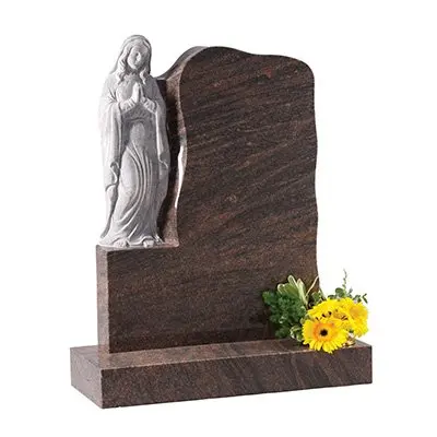 The Himalayan granite rustic memorial features a hand carved ‘Our Lady’ praying figure and provides a beautiful tribute to your loved one.