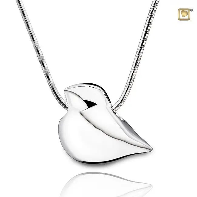 This Silver Soul Bird Cremation Pendant is an ash container for a symbolic amount of ashes. Necklace not included.